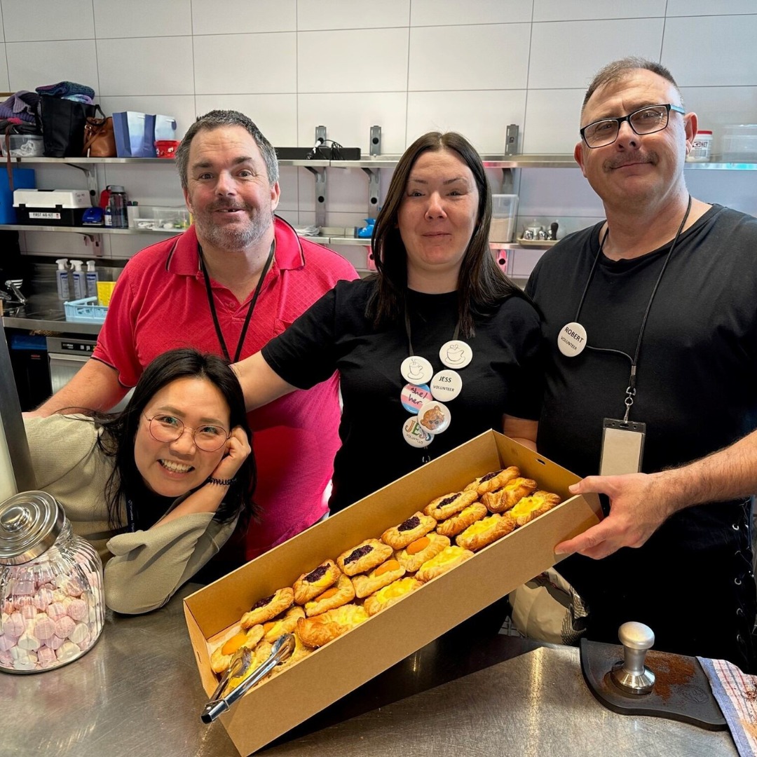 The day’s successes were crowned by an impressive record of 106 cups of barista coffee served, skillfully organised by client volunteers, and a generous donation of 150 pastries by the Catholic College in Sydenham.